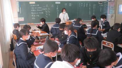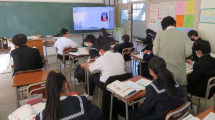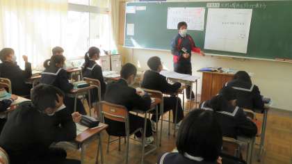 (写真 中:1年3組 数学・少人数「比例の関係」)