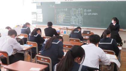(写真 下:3年6組 社会「選挙制度」)