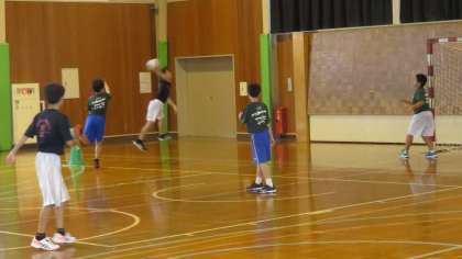 第1体育館では、男子ハンドボール部もシュート練習をしています。