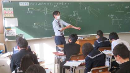 (写真 上:1年2組 理科「凸レンズのはたらき」)