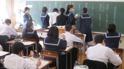 (写真 下:1年4組 国語「蓬萊の玉の枝」)