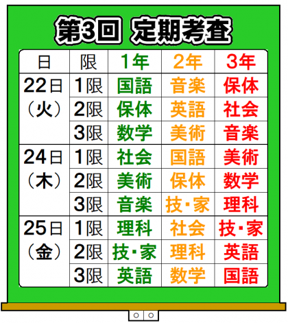 1年・第3回 定期考査・範囲表 をクリックしてご覧ください。