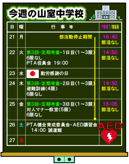 明後日22日(火)から、「第3回 定期考査」が始まります。
