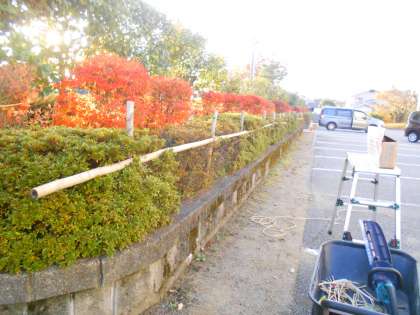 11月22日(火) 玄関前の植え込みに雪囲いをしました。 山室中も冬支度を始めました!