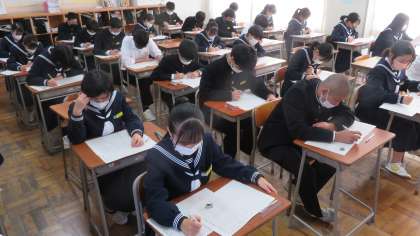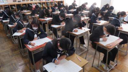 2年・第3回 定期考査・2日目 公開日 2022/11/24 更新日 2022/11/24 2学年 11月24日(木) 1限 国語 今日は、「第3回 定期考査」2日目です。 (1限:国語、2限:保体、3限:技・家) (写真 上:2年3組 中:2年4組 下:2年5組) 明日は、3日目(最終日)です。 あきらめず、粘り強くテスト勉強をしましょう!
