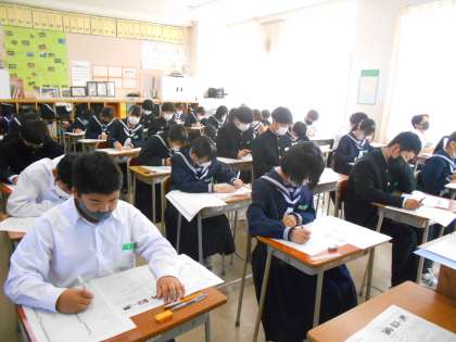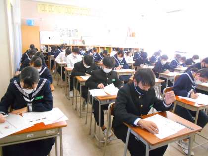1年・第3回定期考査・3日目 公開日 2022/11/25 更新日 2022/11/25 1学年 11月25日(金) 2限 技術・家庭 今日は、「第3回定期考査」3日目です。 最終日も気を抜かずに集中して取り組んでいます。 (写真 上:1年1組 中:1年2組 下:1年5組)