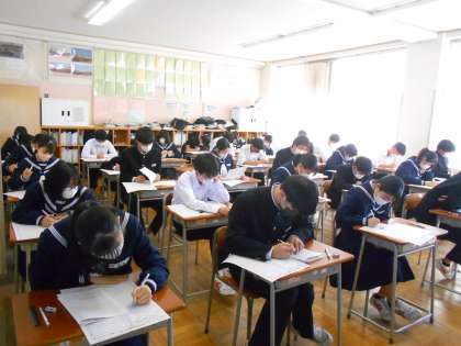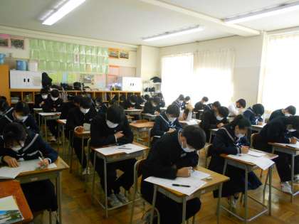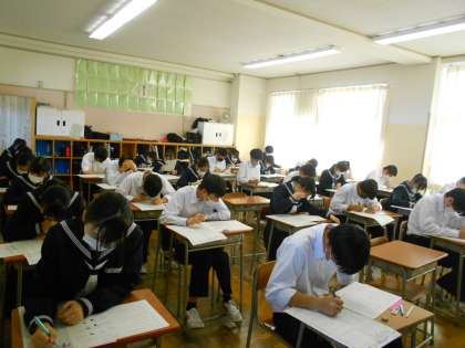 3年・第3回定期考査・3日目 公開日 2022/11/25 更新日 2022/11/25 3学年 11月25日(金) 2限 英語 今日は、「第3回定期考査」3日目です。 さすが3年生、何度も見直しをして時間いっぱいまで集中して取り組んでいます。 (写真 上:3年2組 中:3年3組 下:3年4組)