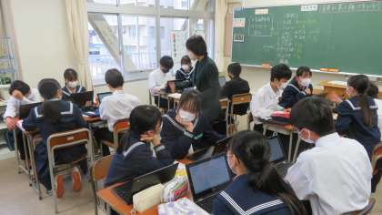 (写真 下:1年5組 国語「貴公子たちの失敗談」)