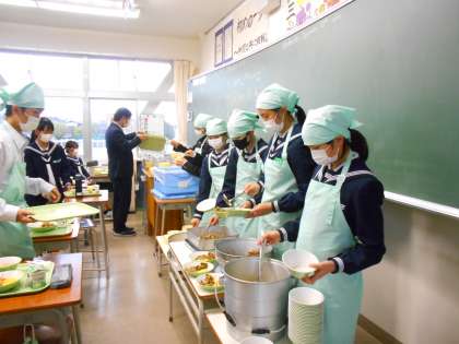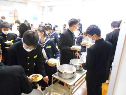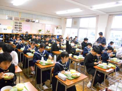 お待ちかね!給食タイム 公開日 2022/11/30 更新日 2022/11/30 山室中学校のページ 11月30日(水) 12:30 今日メニューは石焼きビビンバです。 おかわりもたくさん希望者がいて、人気です。 もりもり食べていますね! (写真 上:1年2組 中:2年1組 下:2年2組)