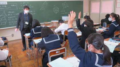 1年4組の数学・少人数は、図形の移動を学習しています。