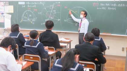 (写真 下:3年6組 理科「太陽の1日の動き」)