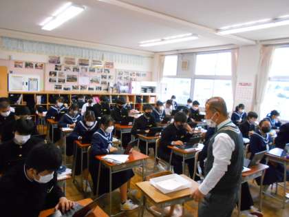 2年・授業風景 公開日 2022/12/02 更新日 2022/12/02 2学年 12月2日(金) 2限 理科では雲のでき方について学んでいます。 「雲は水滴でできているから、いっぱい水滴を描いて!」 (写真 上:2年3組) 国語では、平家物語の暗唱テストをしています。 「祇園精舎の鐘の声・・・・」 (写真 中:2年4組) 技術では、プログラミングの学習中です。 (写真 下:2年5組)