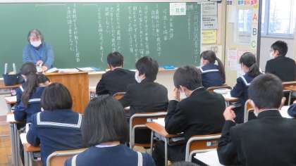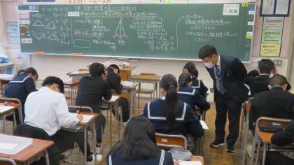 (写真 下:2年5海 数学「図形の性質を使った証明」)
