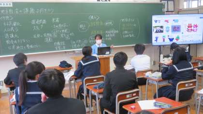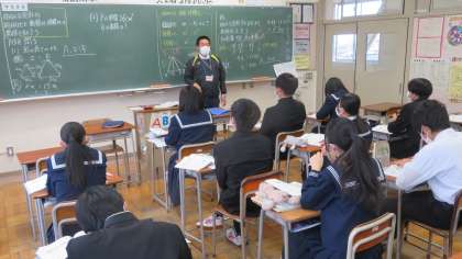 (写真 下:3年6組 数学「相似と面積比・体積比」)