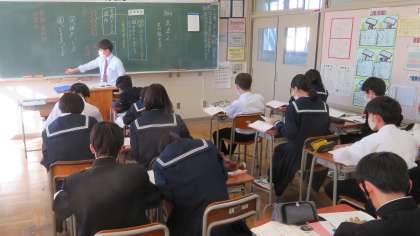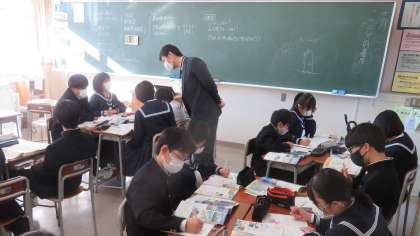 (写真 下:1年5組 国語「文法・文の組み立て」)
