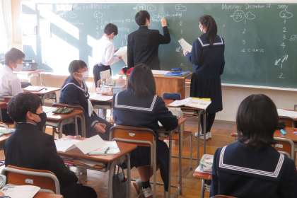 (写真 上:1年2組 社会「北アメリカ州のまとめ」)
