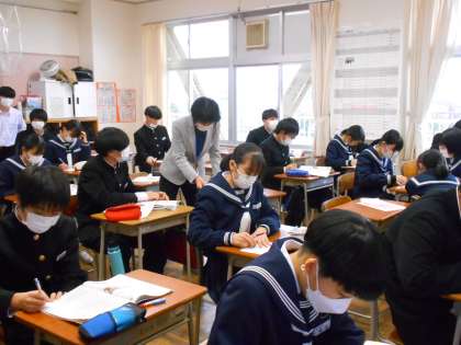 3年・授業風景 公開日 2022/12/14 更新日 2022/12/14 3学年 12月14日(水) 4限 社会では、20年後の将来の収入と支出について、具体的にシミュレーションしています。 (写真 上:3年1組) 英語では、「仮定法」について学習しています。 (写真 中:3年5組) 理科では、「地軸の傾きによって、どのようなことが起こるかな?」天体の学習です。 (写真 下:3年6組)