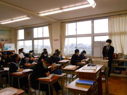 2年・授業風景 公開日 2022/12/15 更新日 2022/12/15 2学年 12月15日(木) 3限 英語では、「本文をすらすら読もう!」という課題で、モニターを見ながら繰り返し発音練習をしています。 (写真 上:2年1組) 音楽では、リコーダーのテストをしています。 一人一人先生の前で吹くのは緊張しますね! (写真 中:2年3組) 理科では、季節風について学習しています。 ノートに図を描きながら理解できたかな? (写真 下:2年4組)