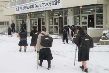 今月は除雪当番を分担していないので、ボランティアの生徒が除雪してくれました。