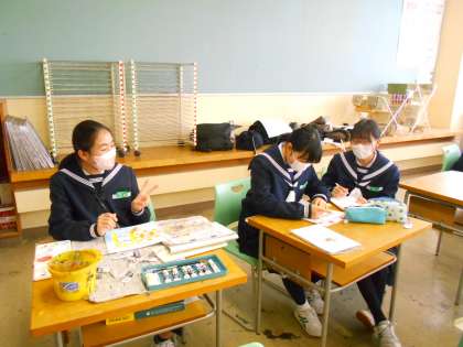 放課後の部活動・その1 公開日 2022/12/20 更新日 2022/12/20 部活動 12月20日(火) 14:00 吹奏楽部は、日々の練習を大切に頑張っています。(写真:上) コンピューター部は、ゲーム作成中です!(写真:中) 美術部は黙々と作品を仕上げています。(写真:下)