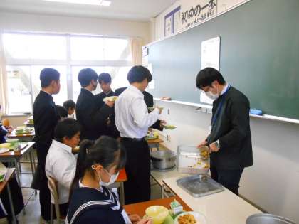 おいしい給食TIME・その2 公開日 2022/12/21 更新日 2022/12/21 山室中学校のページ 12月21日(水) 12:30 おかわりタイムには、ごはんやおかずにたくさんの生徒が集まってきました。 食欲旺盛で素晴らしいです! (写真 上:1年1組 中:3年1組)