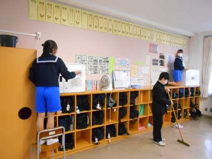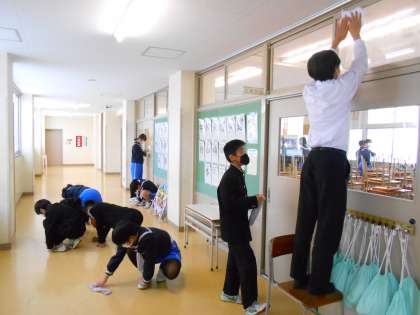 1年・大掃除 公開日 2022/12/23 更新日 2022/12/23 山室中学校のページ 12月23日(金) 8:40 みんなで協力して、教室も廊下も大掃除でピカピカにしています。 これで気持ちよく年末が迎えられそうですね。