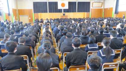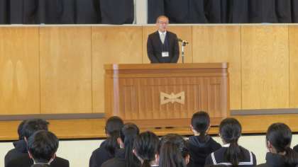「自分の成長を実感できる2学期に!」を振り返り、行事への参加態度と授業についてお話がありました。