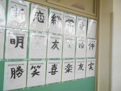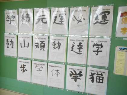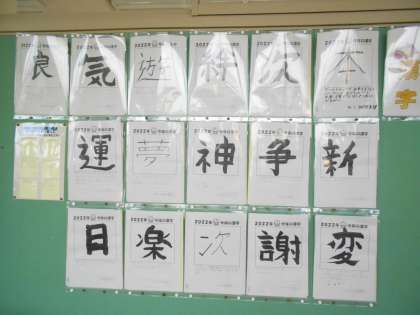 1年・「この1年を振り返ってみると……」 公開日 2022/12/25 更新日 2022/12/25 1学年 12月25日(日) 14:00 1年生の廊下に掲示されている「2022年今年の漢字」を改めて見てみると、「挑」「新」「学」等の漢字が多いようです。 1年生にとっては、小学校から大きな変化があった年になりました。 自分の成長を実感しながら、来年はどんな年にしたいか考えてみるのもよいですね!