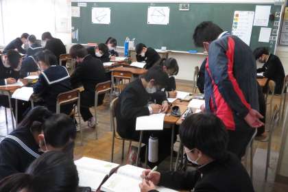 3年・特設授業 公開日 2022/12/27 更新日 2022/12/27 3学年 12月27日(火) 3限 3年生は、午前中、特設授業を行いました。 (写真 上:3年1組 数学「円周角」) (写真 中:3年3組 国語「奥のほそ道」) (写真 下:3年5組 理科「日食」) 3年生は、本当に忙しいし、たいへんです!