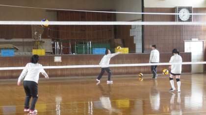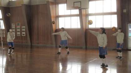 1月4日(水)の部活動・その4 公開日 2023/01/04 更新日 2023/01/04 部活動 1月4日(水) 11:30 第2体育館では、バレーボール部が練習を始めました。 まずは、それぞれ片手でレシーブ練習……
