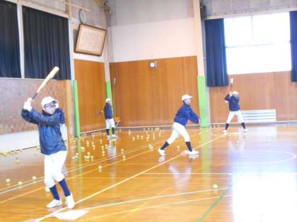 1月7日(土)の部活動・その2 公開日 2023/01/07 更新日 2023/01/07 部活動 1月7日(土) 10:30 野球部は、第1体育館でひたすらバッティング練習をしています。 球数を重ねて、感覚を徐々につかんでいきます。