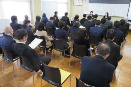 職員研修会 公開日 2023/01/10 更新日 2023/01/10 山室中学校のページ 1月10日(火) 15:00 講師の先生をお招きして、職員研修会を行いました。 先生方も真剣に臨んでいます。 (写真 上、中:講義を聞いています。) (写真 下:後半は学年ごとに分かれて協議しました。)