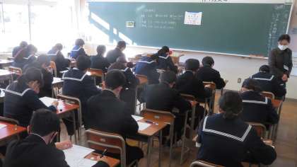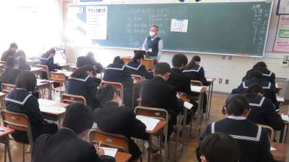 1年・休み明けテスト 公開日 2023/01/11 更新日 2023/01/11 1学年 1月11日(水) 1限 英語 1年生は、休み明けテストを行っています。 (1限:英語、2限:社会・国語、3限:理科・数学) (写真 上:1年1組 中:1年3組 下:1年5組) 冬休み中の復習の成果は出せましたか?