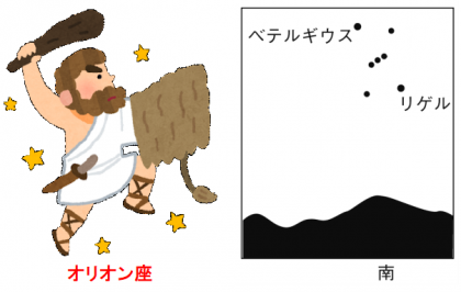 まず、第一段階は、冬の代表的な星座「オリオン座」です。(上図)