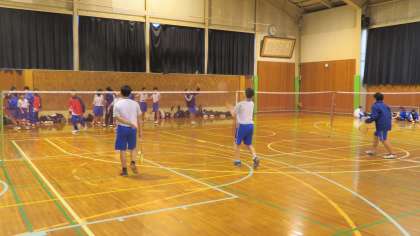 1月17日(火) 16:30 第1体育館では、男子バドミントン部とバレーボール部が練習しています。