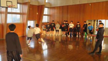 第2体育館では、卓球部とバスケットボール部が練習しています。