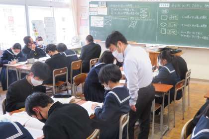 2年・授業風景 公開日 2023/01/20 更新日 2023/01/20 2学年 1月20日(金) 1限 今日は「大寒」ですが、授業は熱いです! (写真 上:2年3組 数学 「長方形・ひし形・正方形と平行四辺形との関係」) (写真 中:2年4組 理科「電流が流れるとは…」) (写真 下:2年5組 国語「春暁」)