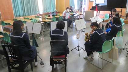 吹奏楽部がポップスの練習をしていました。