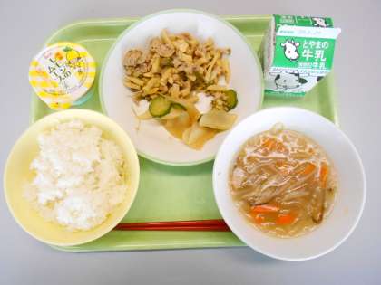 今日は、「ピーマンマンと夜更かし大まおう」の本に出てくる登場人物になぞらえて、青椒肉絲やレモンムースが出ました。