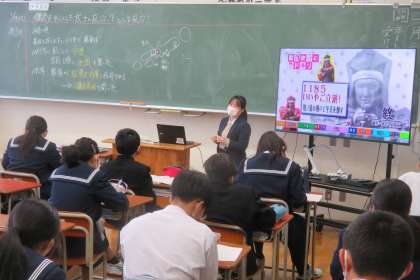 (写真 下:1年4組 社会「武家政治」)