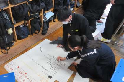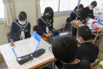 2年・総合・ポスターセッションに向けて 公開日 2023/01/24 更新日 2023/01/24 2学年 1月24日(火) 3限 2年2組の総合は、大課題「よりよい富山をつくるためにどうしたらよいか」のもと、テーマを観光に絞って学習しています。 2月の予定されているポスターセッションに向けて、原稿づくりをしています。 どの班もわかりやすく工夫しながらまとめています!