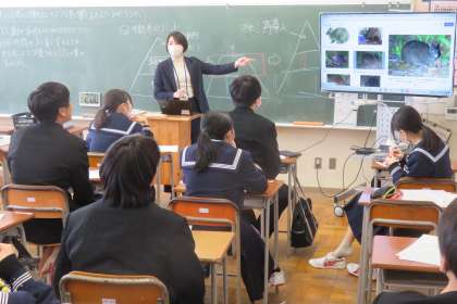 (写真 下:3年5組 理科「生態系ピラミッド」)