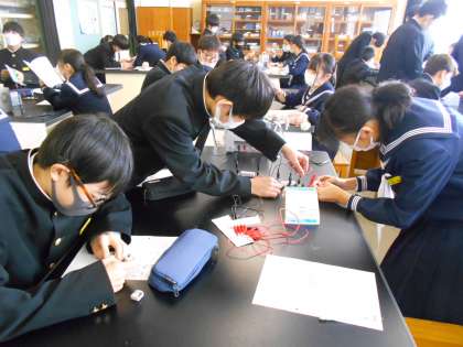 2年・授業風景 公開日 2023/01/27 更新日 2023/01/27 2学年 1月27日(金) 3限 理科では、直列回路、並列回路の電流の違いを電流計を用いて計測しています。 (写真 上:2年1組) 技術では、エクセルの使い方について学習しています。 (写真 中:2年2組) 英語では、受け身文をグループで相談しながら作成しています。 (英語 下:2年4組)