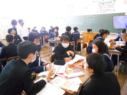2年・授業風景 公開日 2023/01/27 更新日 2023/01/27 2学年 1月27日(金) 3限 理科では、直列回路、並列回路の電流の違いを電流計を用いて計測しています。 (写真 上:2年1組) 技術では、エクセルの使い方について学習しています。 (写真 中:2年2組) 英語では、受け身文をグループで相談しながら作成しています。 (英語 下:2年4組)