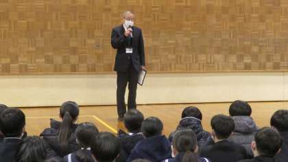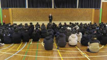 3年生は、2月2日(木)に行われる私立高校一般入試に向けて、第1体育館で事前集会を行いました。