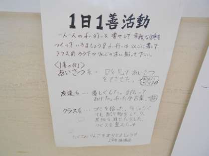 1年生の学年協議会の企画で、「一日一善活動」をしています。