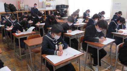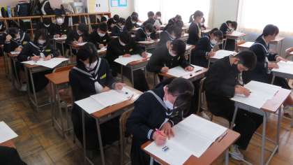 2年・実力テスト 公開日 2023/02/02 更新日 2023/02/02 2学年 2月2日(木) 2限 国語 2年生も、実力テストを行っています。 (1限:社会、2限:国語、3限:理科、4限:英語、5限:数学) (写真 上:2年1組 中:2年3組 下:2年5組) 1年後の入試を少しでもイメージすることができましたか?