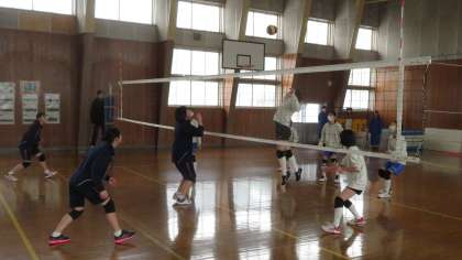 第2体育館では、バレーボール部が城山中と練習試合をしていました。