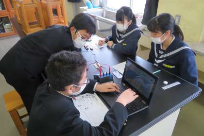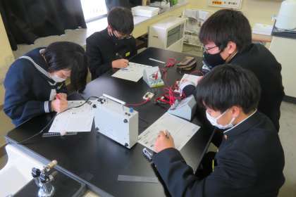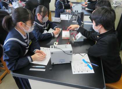 2年2組の理科は、第2理科室で、電圧と電流の関係を調べる実験を行いました。