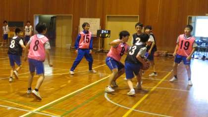 2年・体育・バスケットボール 公開日 2023/02/08 更新日 2023/02/08 2学年 2月8日(水) 3限 2年4,5組男子の体育は、第1体育館で、バスケットボールをしていました。 試合形式で繰り返し練習します!